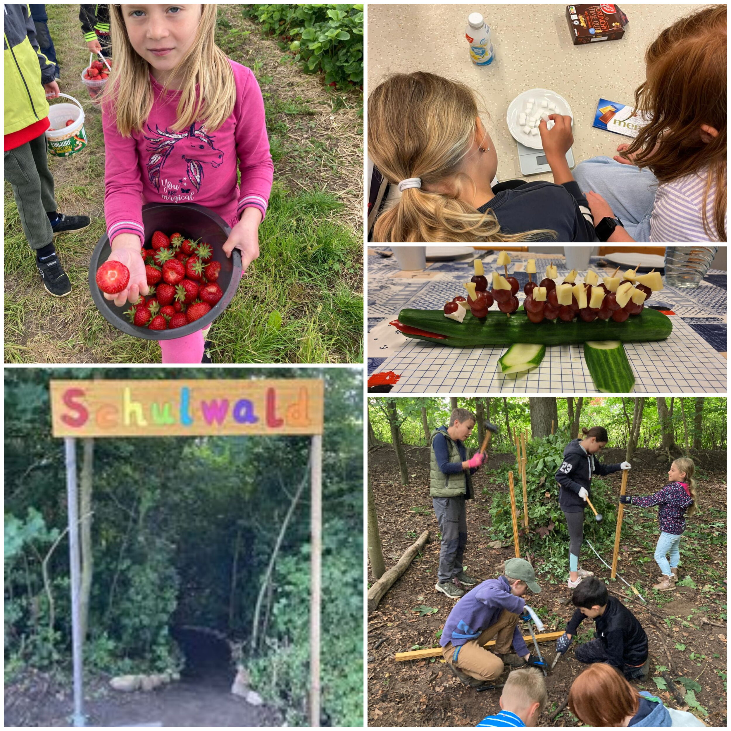 Zwei Wochen vor den Sommerferien hatten wir eine Projektwoche. Alle Kinder durften zwischen 13 Projekten wählen: „Theaterwerkstatt“, „Vom Schulkind zum Schriftsteller“, „Sport und Spiele in der Probstei“, „Gruppenküren mit Musik“, „Mini-Musical: Fisch Merlin hat Mut“, „Gesunder Start in den Tag“, „Wir stricken einen Schal“, „Hilfe, wir haben noch nicht alle Latten im Zaun!“, „Tennis spielen lernen“, „Erdbeeren - gesund und lecker“, „Erste Hilfe für mich und andere“, „Plattdeutsch“ und „Experimente - es braust und zischt“.
