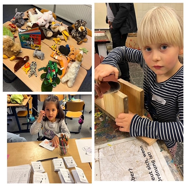 Am Montag, den 11. November 2024, öffnete die DGS Probsteierhagen ihre Türen für die zukünftigen Erstklässlerinnen und Erstklässler und ihre Familien. Der Tag der offenen Tür bot eine großartige Gelegenheit, unsere Schule und ihre vielfältigen Angebote kennenzulernen. Die Kinder konnten im Werkraum basteln und mit den neu gespendeten Sägen des Fördervereines, sägen und werkeln. Außerdem hatten sie die Möglichkeit, sich in der Turnhalle sportlich zu betätigen, den Musikraum zu erkunden, an spannenden Experimenten teilzunehmen, zu malen und erste Erfahrungen mit den Fächern Deutsch, Mathematik und Englisch zu sammeln. Es war ein erster spannender Einblick in das Schulleben an der DGS Probsteierhagen. Die Lehrkräfte und das ganze Team der OGTS standen für alle Fragen zur Verfügung. In der Cafeteria sorgten selbstgebackene Kuchen und Getränke für eine gemütliche Atmosphäre. An dieser Stelle vielen Dank für die Kuchenspenden und die tatkräftige Unterstützung aller Helferinnen und Helfer!